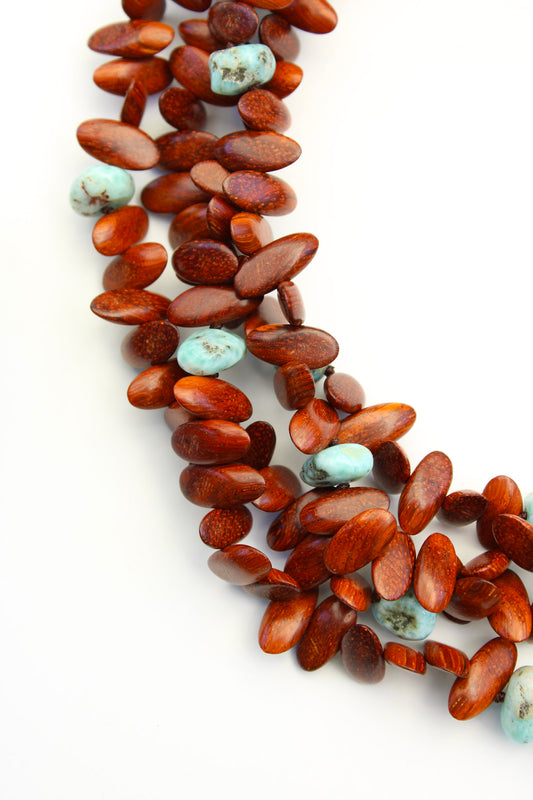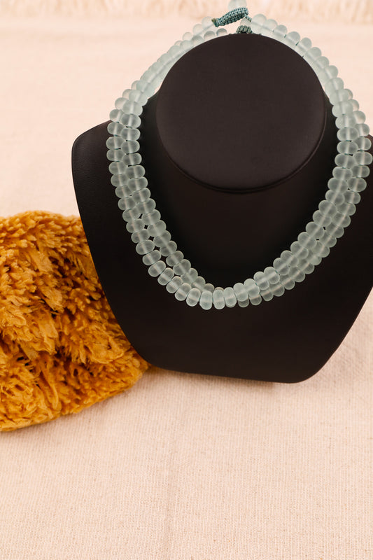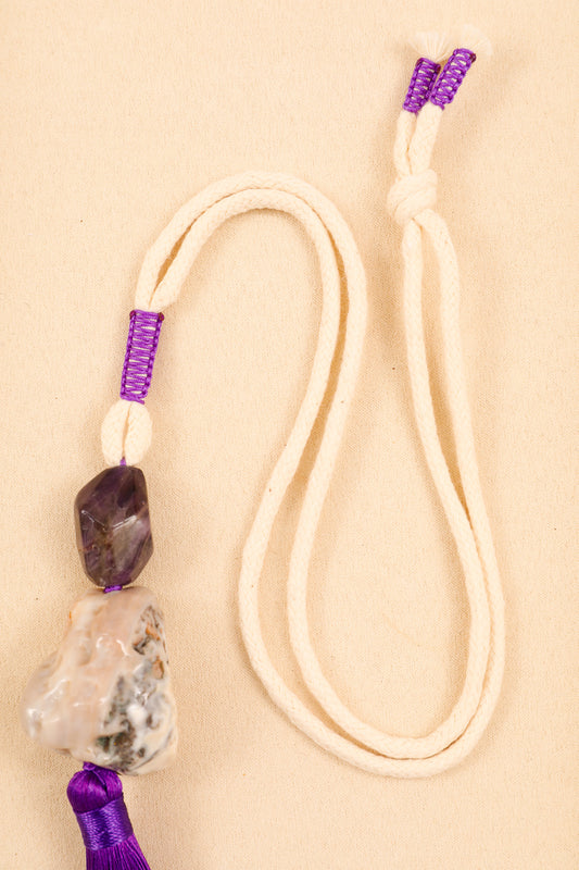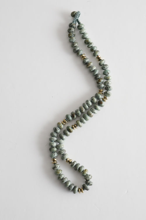 Amazonite Button Gemstone Ribbon Necklace with Medallion