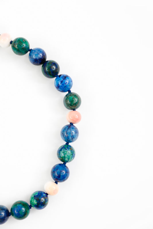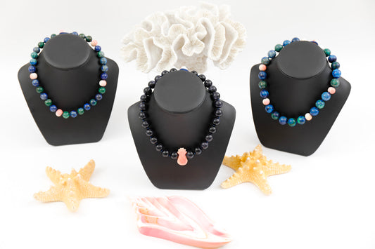 Chrysocolla and Hand Carved Conch Shell Rounds