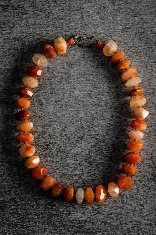 Orange Botswana Agate Faceted Gemstone Button Necklace