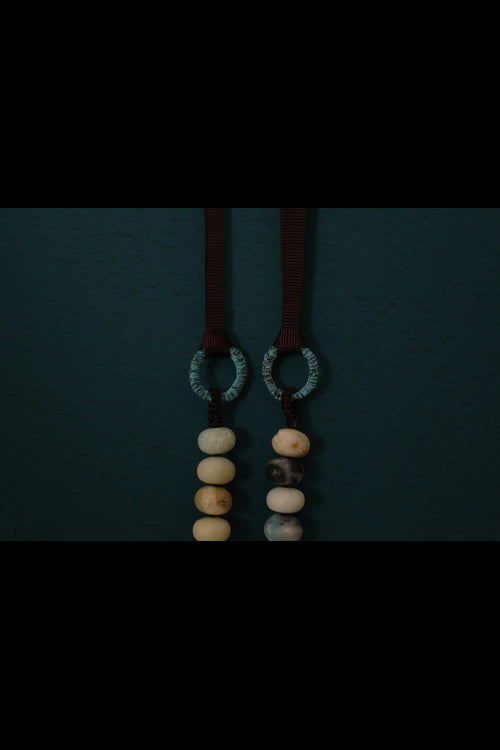 Delve into the charm of our Amazonite Button Gemstone Ribbon Necklace with Medallion. Featuring hand-knotted amazonite gemstones and a stunning medallion in Verdigris (blue-green), this piece is a celebration of earth's treasures. The medallion's captivating design and ribbon finishing adds an exotic flair to this necklace, making it more than an accessory, it's a symbol of nature's inherent artistry.